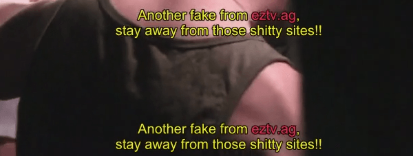 Ten minutes into the episode, a red warning appears, telling viewers that EZTV.ag is a huge security risk.