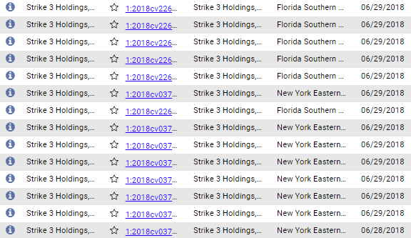 There is, however, a new contender for the crown. Strike 3 Holdings, which distributes its adult videos via the Blacked, Tushy, and Vixen websites, has filed 976 cases during the same period.