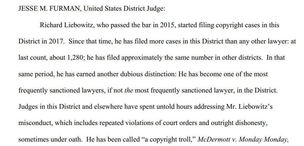 A scathing order issued by US District Court Judge Jesse M. Furman leaves little to the imagination, starting with some background information on Liebowitz’s young but troubled career.