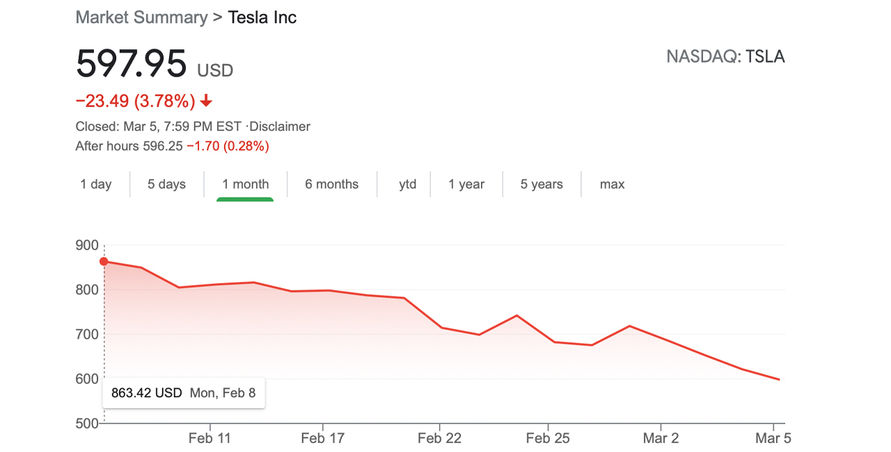 Ever since Tesla announced the company held $1.5 billion in bitcoin on its balance sheet during the first week of February, the company’s stocks have dropped over 30%. One analyst says that Tesla’s shareholders would be “very supportive” if the company announced it would sell the bitcoin. Additionally, the shares of Microstrategy’s firm have also dropped considerably during the last 30 days, after multiple bitcoin treasury purchase announcements.