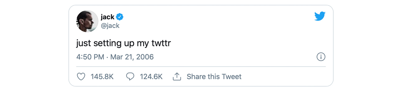 - The non-fungible token (NFT) asset hype has grown immensely and on Monday, March 22, 2021, Jack Dorsey’s tokenized tweet from March 21, 2006, was sold for $2.9 million in ether. Bitcoin.com reported on the tokenized 2006 Dorsey tweet during the first week of March when bids were up to $1.5 million for the tweet.