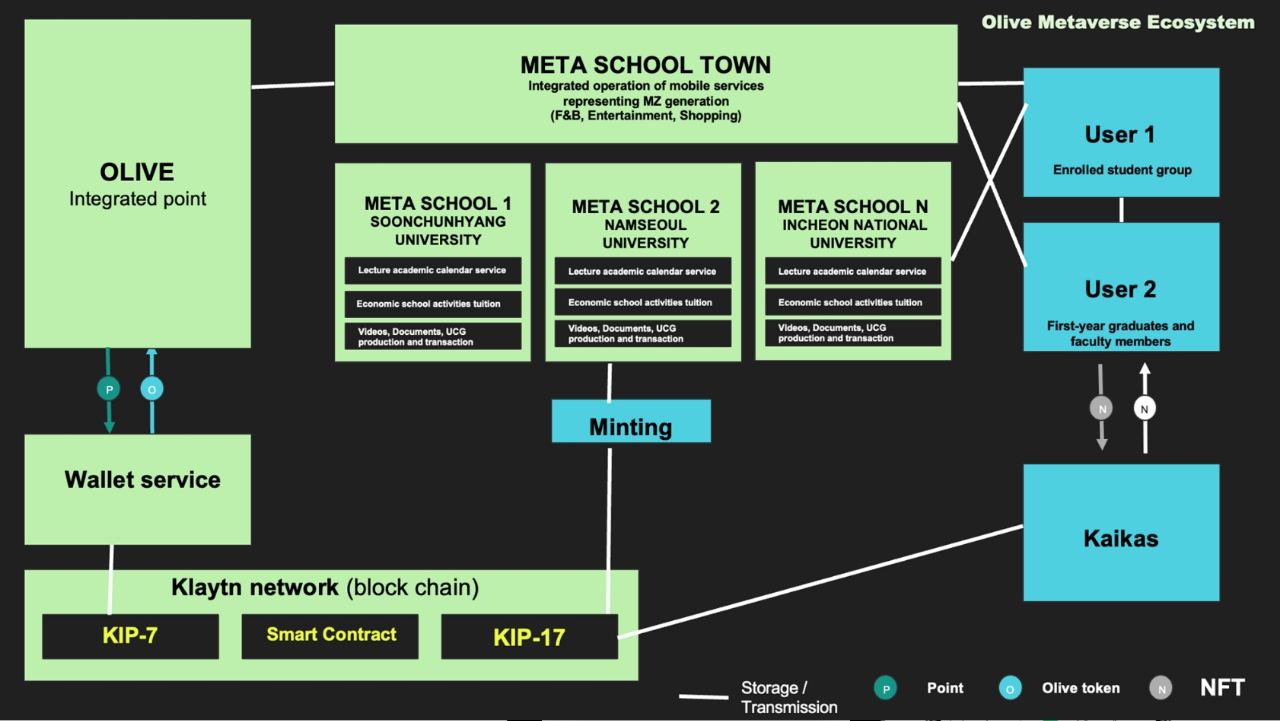 Olive creates a point integration system that makes use of a blockchain-based metaverse platform and a point-only bank to allow clients to freely spend points inside it. There are different areas as well such as the Playground wherein users can freely participate in various quests, themes and other aspects associated with the metaverse. Offline content is also available and this section includes content which can induce and promote interest in platforms which will in turn improve the overall image and reputation of the brand.