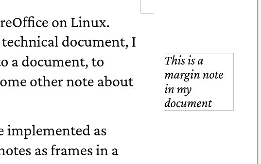 I use LibreOffice Writer on Linux to write my documentation, including client proposals, training materials, and books. Sometimes when I work on a very technical document, I might need to add a margin note to a document, to provide extra context or to make some other note about the text.
