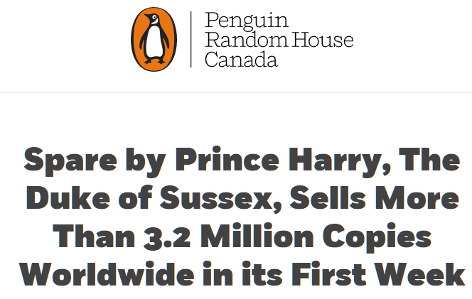 Released on January 10, ‘Spare’ was an immediate smash-hit sensation, with PRH reporting record-breaking global sales of more than 3.2 million units across print, digital, and audio formats – in its first week on sale.