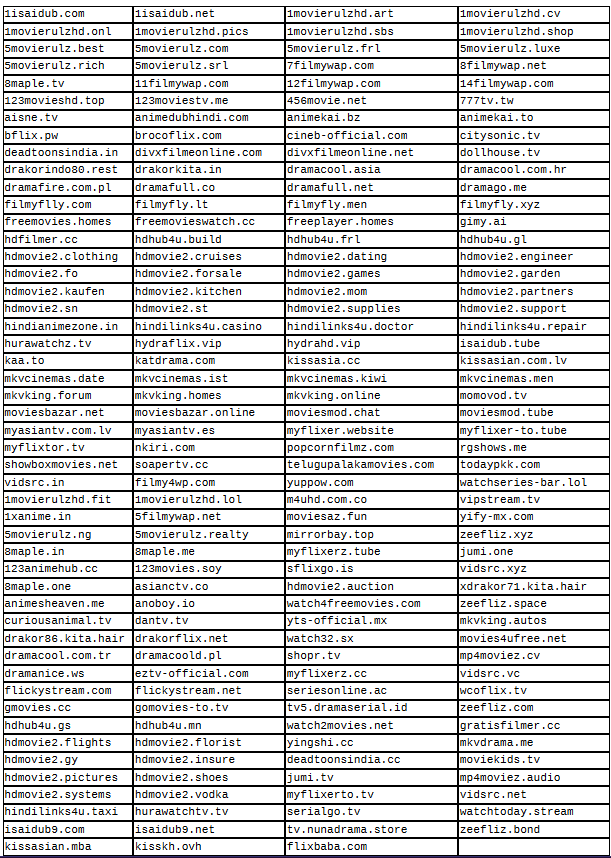 The list of ‘rogue’ sites contains several large piracy platforms such as Vidsrc, HydraHD, and Cineby, all of which the MPA directly links to ‘hydra-like’ activity.
